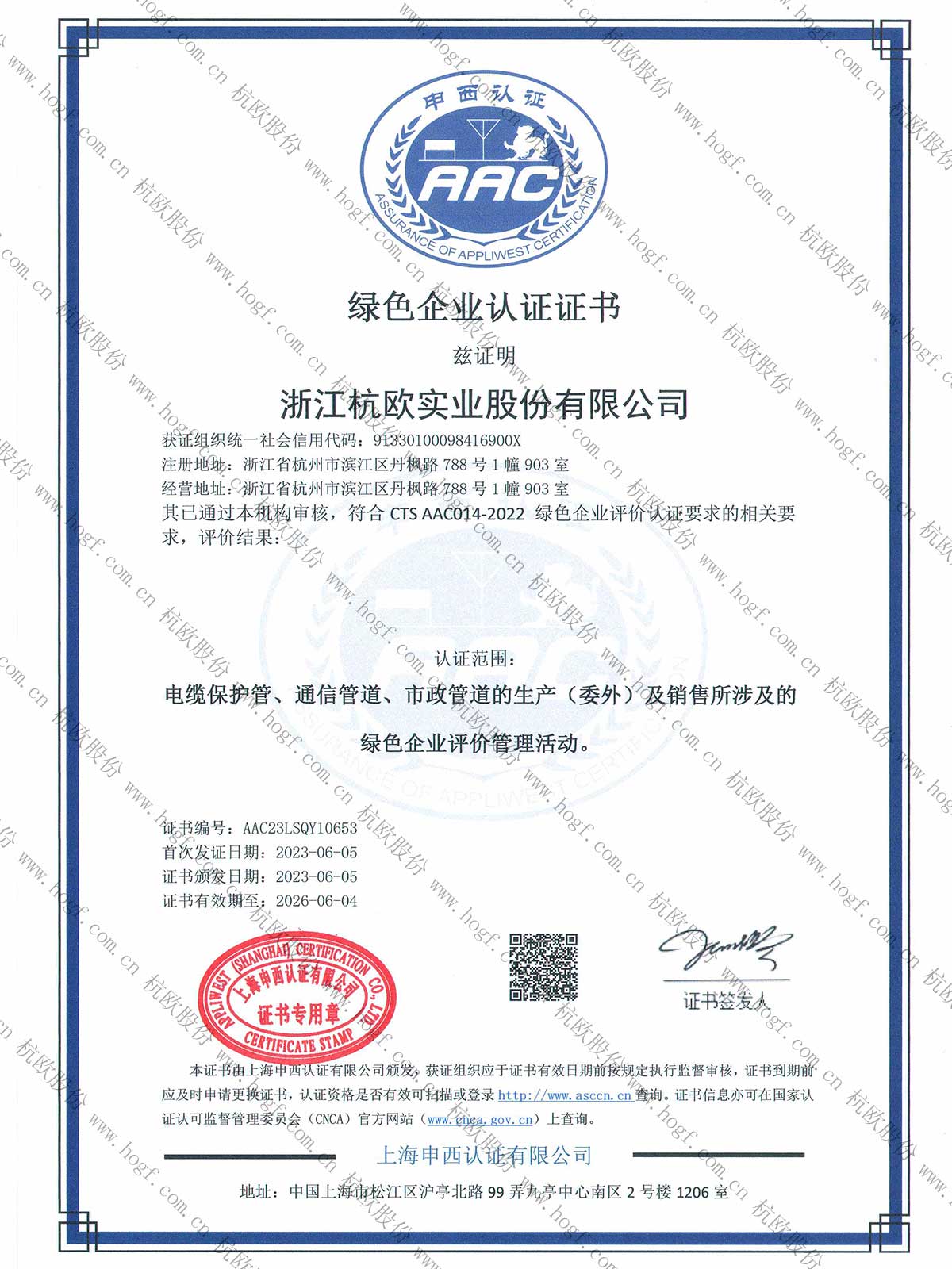 浙江杭歐新材料股份有限公司是一家專業從事技術研發、設計、生產電力電纜用導管,通訊保護管、市政工程管、電工套管等各類型特種塑料管材的高新技術企業。主要生產HPVC電纜保護管、PVC-O自增強通信電纜保護管、CRCPP電力管、PVC-C電力管、MPP非開挖頂管、MPP單壁波紋管、MPP平壁波紋管、BWFRP纖維纏繞拉擠管、多孔梅花管、塑合金管、圓七孔管、多孔格柵管等100多個品種產品的先進企業。