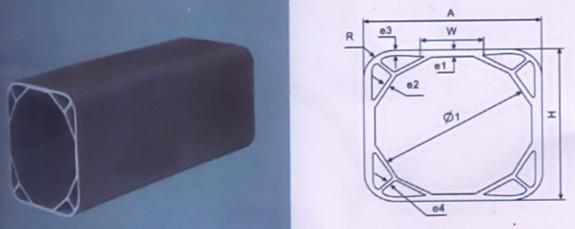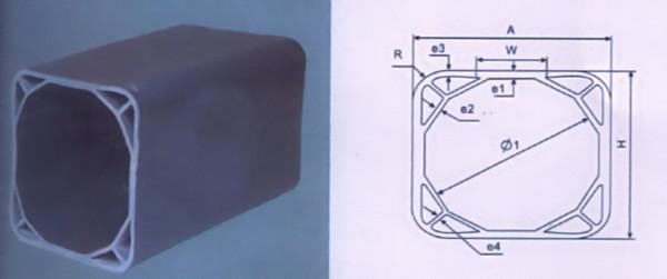該新型管材采用了互穿網(wǎng)絡(luò)多元合金化技術(shù)改性,利用了力學(xué)分配原理進(jìn)行創(chuàng)新結(jié)構(gòu)設(shè)計(jì),采用了外方形內(nèi)正十二邊形及輔助三角形支撐的獨(dú)特的增強(qiáng)型一體力學(xué)構(gòu)架,一次擠出成型,達(dá)到分散應(yīng)力支撐管體和提高抗壓強(qiáng)度的目的,從而使該產(chǎn)品具有高韌性、高抗壓性和高抗沖擊性等無(wú)可比擬的突出性能。因此,結(jié)構(gòu)、配方、工藝是該產(chǎn)品的三大創(chuàng)新點(diǎn)。
